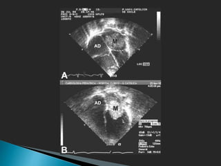 El documento describe las características clínicas y patológicas de los mixomas cardiacos. Los mixomas son los tumores cardiacos benignos más comunes, representando el 50% de los tumores cardiacos. Generalmente se presentan en la aurícula izquierda y su principal síntoma es la obstrucción de la circulación. El diagnóstico se realiza mediante ecocardiografía y el tratamiento quirúrgico es necesario debido al riesgo de embolización.