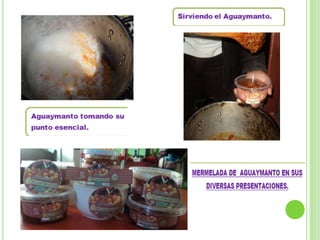 Este documento presenta un plan de marketing para la empresa Misky, dedicada a la elaboración y comercialización de mermelada de aguaymanto. Incluye un análisis del mercado, competidores y entorno, así como detalles sobre el producto, precio, promoción y distribución. El objetivo es posicionar la mermelada de aguaymanto como un producto natural y exótico para el mercado de Huacho.