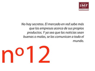 El documento aborda la importancia del marketing y comunicación digital, enfatizando la gestión de la reputación online y la necesidad de una estrategia efectiva para participar en redes sociales. Se presentan recomendaciones para actuar en situaciones de crisis, destacando la velocidad, transparencia y un trato personalizado. Además, se recalca la relevancia del diálogo y la escucha activa en la interacción con el público.