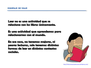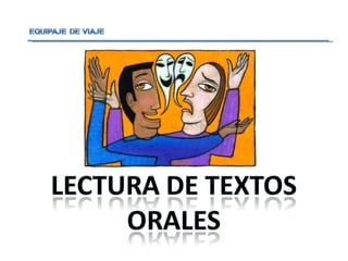 El documento discute la lectura como una actividad dinámica y relacional que depende de las experiencias previas del lector. La lectura ha evolucionado con los cambios tecnológicos pero también mantiene formas tradicionales. Se analizan diferentes tipos de lectura de textos e imágenes, incluyendo lecturas denotativas, connotativas e intertextuales. También se discute la oralidad como una forma cultural que se renueva pero mantiene raíces en la tradición oral.