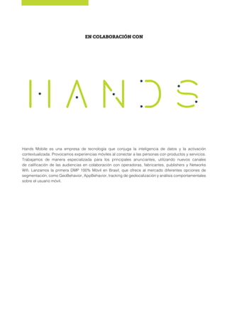 Este documento describe el crecimiento exponencial de los datos móviles y la importancia del análisis de grandes datos provenientes de dispositivos móviles. Explica que para 2021 habrá 49 exabytes de tráfico de datos móviles por mes, lo que representa 122 veces más que el volumen total de datos móviles hace 10 años. Además, señala que los datos móviles son fundamentales para el funcionamiento de muchas empresas y servicios en la economía digital actual.