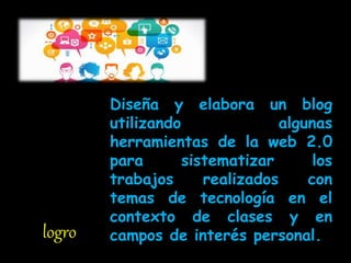 Este documento describe cómo diseñar y elaborar un blog usando herramientas de la web 2.0 para sistematizar trabajos realizados en clases y áreas de interés personal. Un blog es una página web que publica artículos cortos y actualizados sobre temas específicos. Los blogs ofrecen usos educativos como estimular la escritura, intercambio de ideas y trabajo en equipo de los estudiantes.