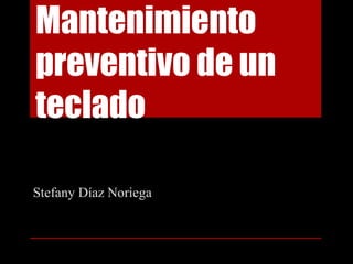 El documento habla sobre el mantenimiento preventivo de un teclado, recomendando limpiarlo con un paño húmedo para eliminar el polvo acumulado y revisar que todas las teclas funcionen correctamente.