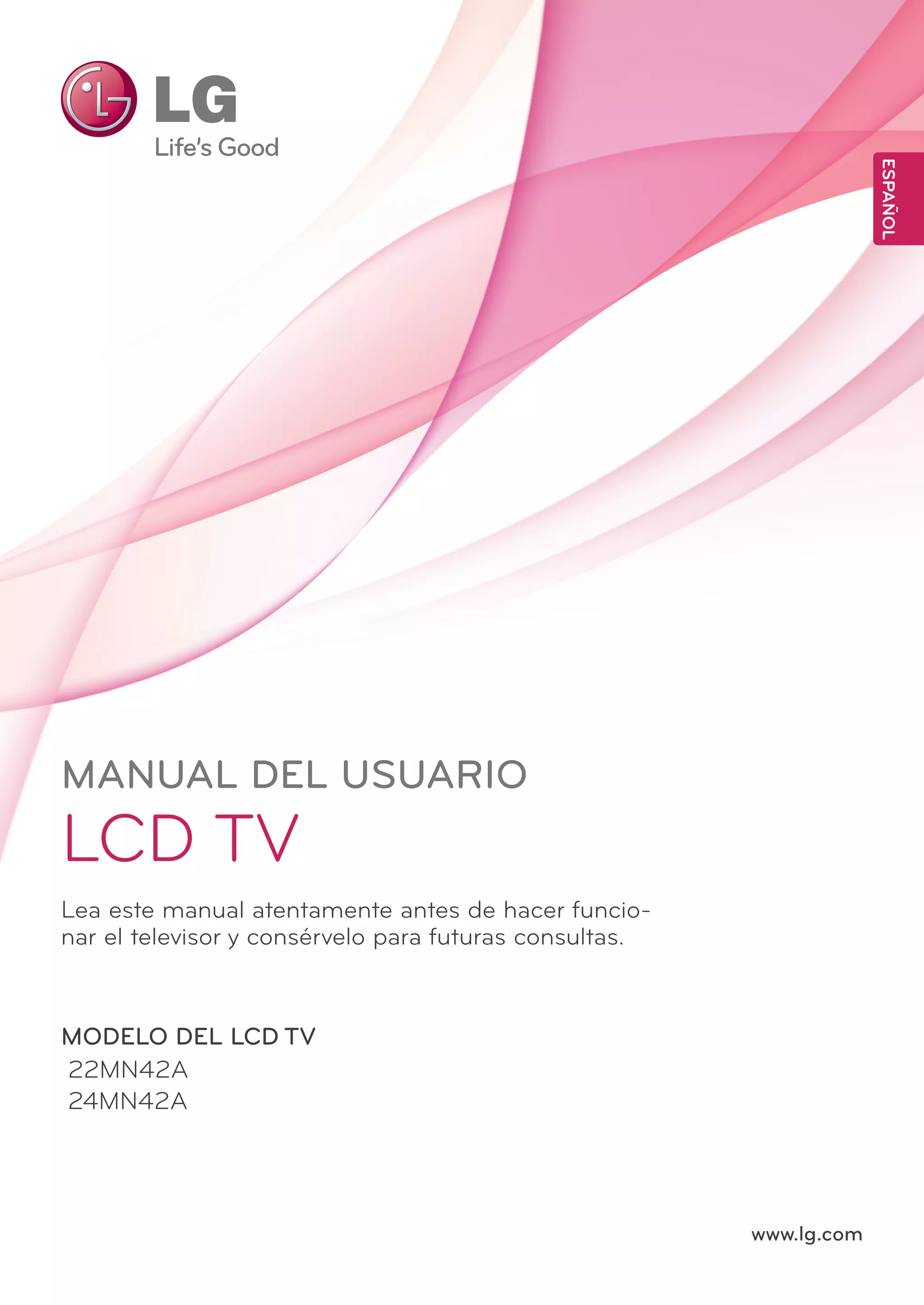 Este manual proporciona instrucciones para la instalación, conexión y uso de un televisor LCD. Incluye guías sobre cómo montar el televisor en una mesa o en la pared, conectar dispositivos externos como una antena, reproductor de DVD o cámara, y utilizar las funciones integradas como ver fotos, escuchar música o ver televisión. También explica cómo acceder a los menús de configuración para personalizar la imagen, el sonido y otros ajustes.