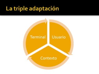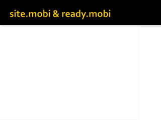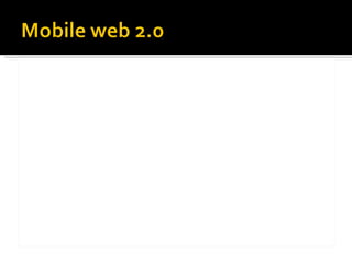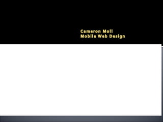 El documento habla sobre el desarrollo de la web móvil. Explica que cada vez más páginas están siendo diseñadas para dispositivos móviles y que el tráfico a sitios móviles está creciendo rápidamente. También discute los desafíos de diseñar para una variedad de dispositivos móviles y los estándares como XHTML para la web móvil. Finalmente, analiza cómo el iPhone puede afectar el futuro de la web móvil.