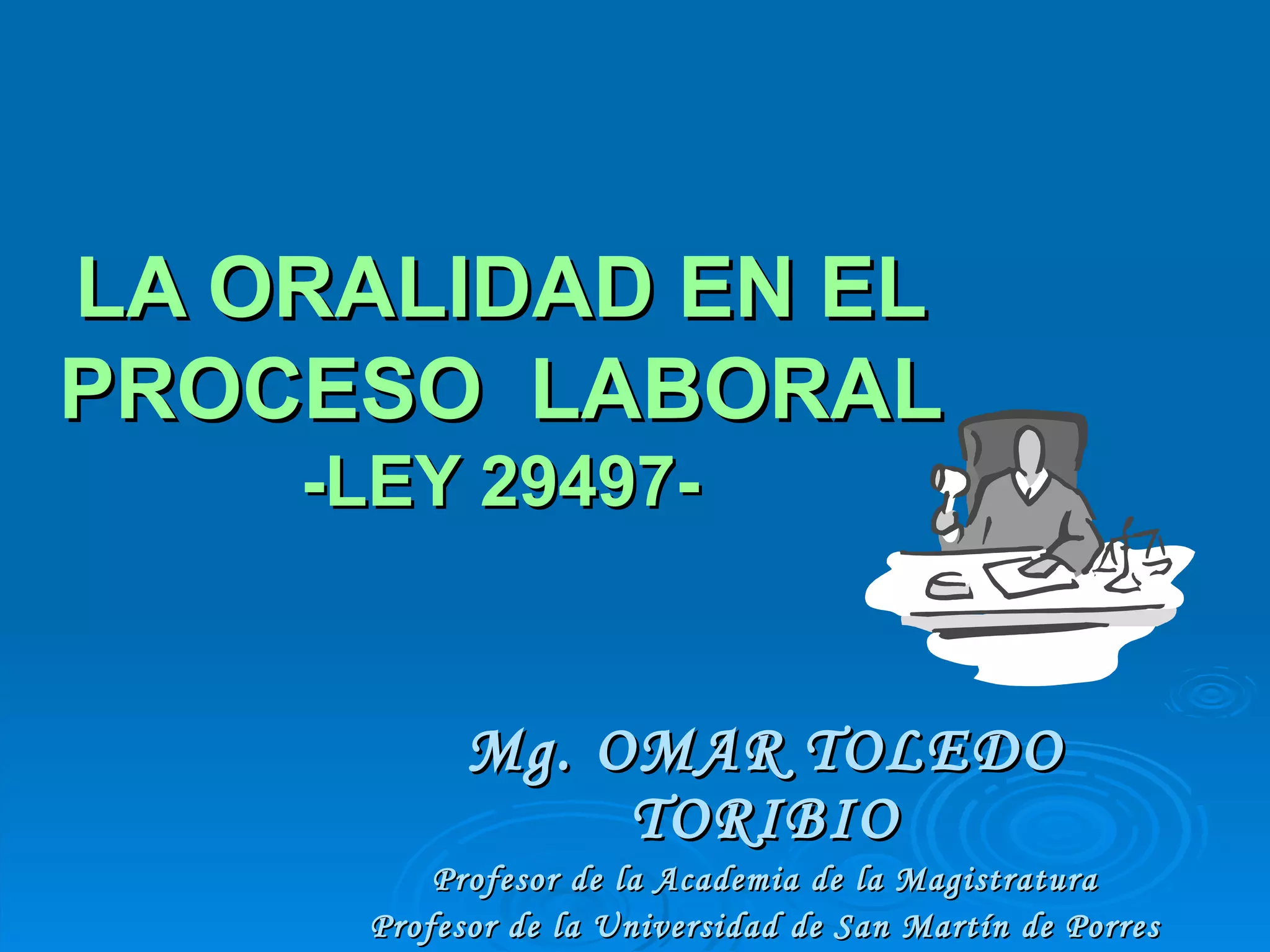 Este documento resume las reglas de conducta y oralidad en los procesos laborales según la Ley 29497. Describe el proceso ordinario laboral que incluye una audiencia de conciliación y una de juzgamiento, así como el proceso abreviado con una audiencia única. Explica las etapas de confrontación de posiciones, actuación probatoria y alegatos, y que la oralidad prevalece sobre lo escrito.