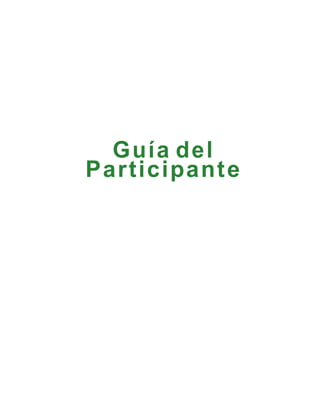 Este documento presenta la guía del participante para el curso virtual sobre Gobierno Abierto impartido por el Instituto Nacional de Administración Pública de Guatemala. Explica los objetivos del curso, la metodología, la estructura modular, el equipo docente, las actividades y la evaluación. El curso se desarrollará en cuatro semanas con temas sobre reforma del estado, gobierno electrónico, participación ciudadana y la Iniciativa de Gobierno Abierto, concluyendo con una semana de recuperación.