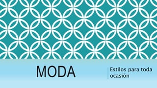 Este documento resume las principales tendencias de moda según la época del año y el clima. Explica que en verano se usan shorts y vestidos, en otoño jeans y blusas, en invierno pantalones y abrigos, y en primavera shorts y camisas. Además, destaca a los 10 diseñadores de moda más famosos como Valentino, Karl Lagerfeld y Carolina Herrera. Finalmente, analiza cómo la moda es una expresión de estilo que depende de factores como la temporada y el clima.