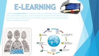 Este documento describe diferentes tipos de aprendizaje electrónico, incluyendo el aprendizaje electrónico, que es la educación a distancia completamente virtualizada a través de Internet y herramientas como correo electrónico y páginas web; el aprendizaje electrónico móvil o M-learning, que usa dispositivos móviles; el u-Learning, que permite el aprendizaje en cualquier momento y lugar a través de la tecnología; y el T-Learning o aprendizaje televisivo, que usa la televisión interactiva para