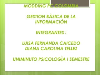 El modding de PC es la modificación estética o funcional de partes de una computadora como la torre, mouse, teclado o monitor. Se le llama "modder" a quien practica este arte. Las modificaciones más comunes incluyen sustituir LEDs por otros más potentes, pintar el interior o exterior, agregar ventiladores y elementos de iluminación. El modder suele utilizar herramientas como una Dremel, aerógrafo, pistola termofusible y destornilladores. El modding comenzó en Colombia hace unos doce años y hoy existe