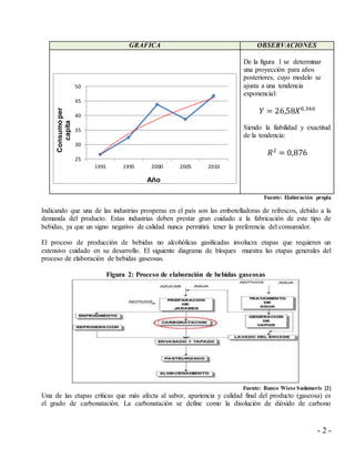 Este documento presenta un análisis conceptual para modelar matemáticamente una columna de burbujeo aplicada al proceso de carbonatación de bebidas no alcohólicas. Explica que las columnas de burbujeo son dispositivos comúnmente usados como absorbedores en la industria química. El objetivo es desarrollar un modelo matemático y un programa de simulación para describir la carbonatación mediante la generación y evaluación de parámetros clave como el diámetro de burbujas, retención de gas, y coeficient