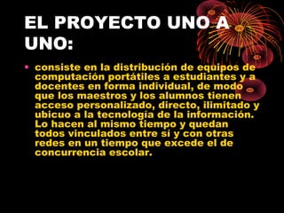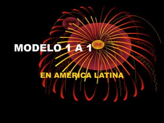 El documento describe los modelos 1 a 1 implementados en América Latina, donde se distribuyen computadoras portátiles a estudiantes y docentes de forma individual. Explica los objetivos de estos programas como reducir la brecha digital y mejorar los logros académicos. Luego, resume los detalles de los programas 1 a 1 implementados en Uruguay (Ceibal), Argentina (Conectar Igualdad) y Chile (Laboratorios Móviles Computacionales). Finalmente, menciona que la RELPE organizó un seminario para compartir experiencias sobre estos modelos.