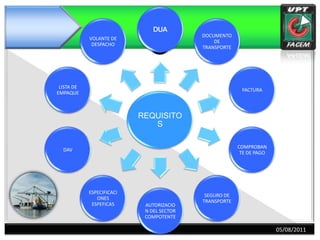 Este documento define el procedimiento aduanero para importar mercancías a través de la Declaración Única Aduanera (DUA), incluyendo la numeración de la DUA, la cancelación de deudas tributarias, la asignación de canales (rojo, verde, naranja), la revisión documentaria y reconocimiento físico de mercancías, y el retiro final de las mercancías.