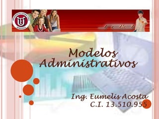 El documento describe varios modelos administrativos que pueden utilizarse en una empresa, incluyendo el modelo de trabajo en equipo combinado con el liderazgo, el modelo de coaching, el modelo sistemático y el modelo autocrático. Explica que el administrador debe seleccionar el modelo adecuado dependiendo de las condiciones de la empresa, y que el modelo ideal es la administración por objetivos.
