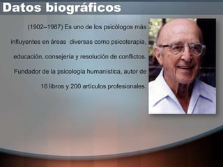 El modelo de Carl Rogers se centra en modificar la conducta humana a través de abrir canales de comunicación y experiencias humanas, enfatizando más en el proceso que en el contenido. Rogers cree que a través de la empatía, consideración positiva e incongruencia por parte de un facilitador, los individuos podrán alcanzar su máximo potencial y sufrir cambios positivos.
