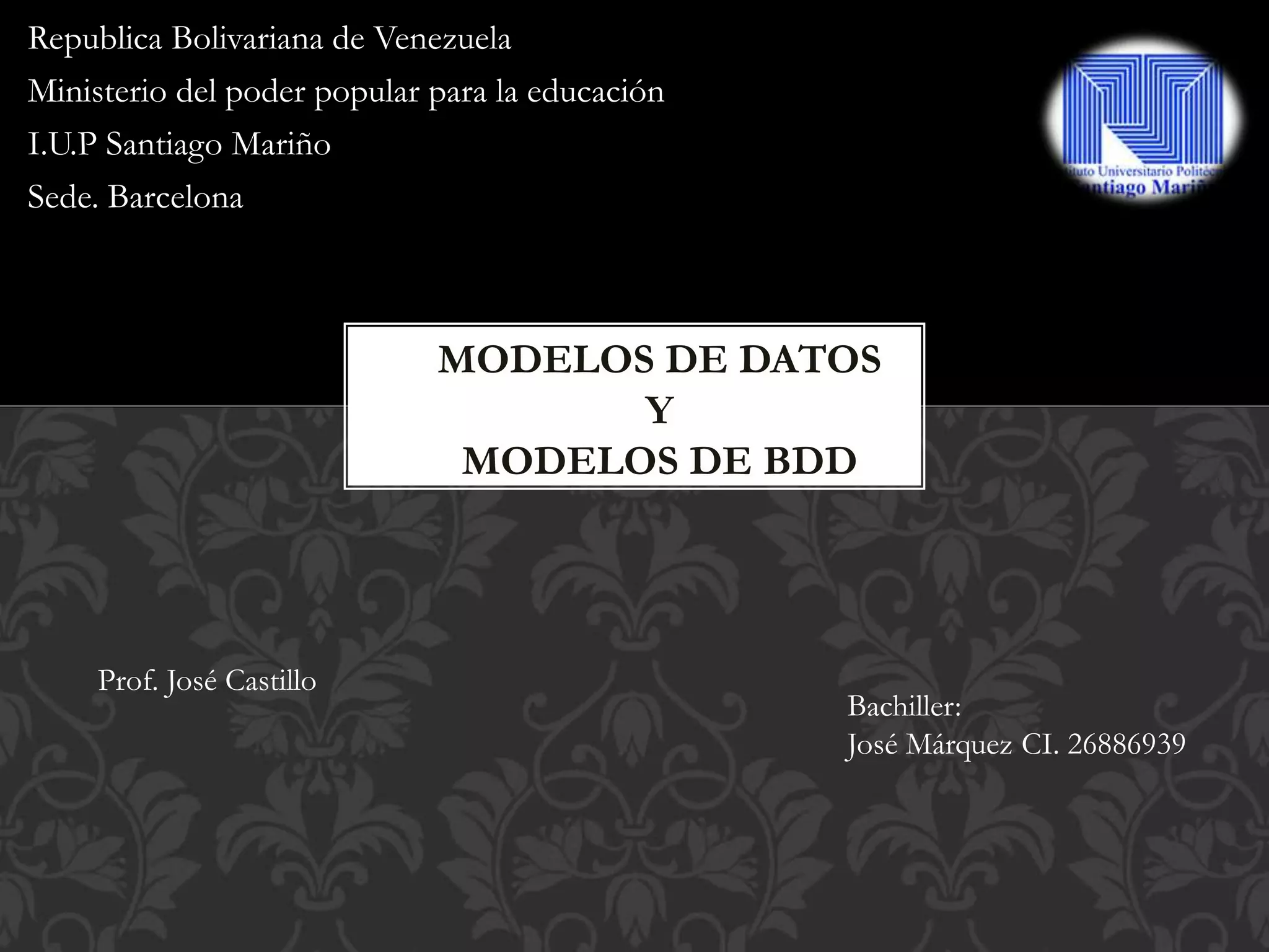 Este documento describe diferentes modelos de bases de datos, incluyendo modelos conceptuales de datos, empresariales, lógicos de datos y físicos. Explica que los modelos de datos ayudan a determinar la estructura lógica de una base de datos y cómo organizar y manipular los datos. También cubre el modelo entidad-relación, el cual ilustra las entidades, atributos y relaciones que participan en una función de negocios.