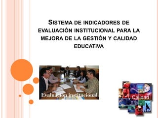 El documento presenta un modelo de evaluación institucional educativa compuesto de 10 categorías y 54 indicadores. El modelo busca generar información para la toma de decisiones de las instituciones educativas con el fin de mejorar la gestión y calidad educativa. El modelo fue validado por diversas instituciones educativas que encontraron clara la vinculación entre los indicadores y las estrategias de gestión para alcanzar las metas institucionales.