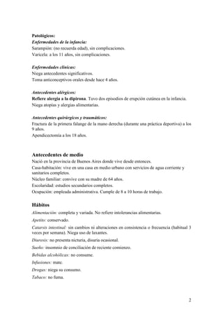 Hábitos sexuales: Pareja estable. No usa métodos de barrera. Consume anticonceptivos.