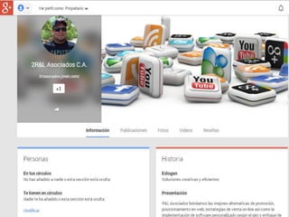 Este documento presenta un modelo de negocio digital utilizando Google Plus. Propone crear una empresa virtual que ofrezca servicios de marketing en Internet y promocione el uso de Google Plus para que las empresas vendan productos. Explica cómo la empresa usaría las características de Google Plus como círculos, el botón "+1", vínculos y Hangouts para publicitarse a sí misma, a clientes y proveedores de manera viral.