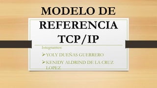 El documento describe el modelo de referencia TCP/IP. TCP/IP fue desarrollado originalmente por el Departamento de Defensa de EE. UU. para conectar redes de computadoras. Se compone de cuatro capas: aplicación, transporte, internet e interconexión de redes. Cada capa proporciona funciones específicas para la comunicación de red de forma independiente del hardware subyacente.