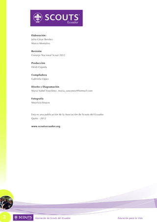 Este documento presenta el Modelo de Seguridad Scout de la Asociación de Scouts del Ecuador. El modelo tiene como objetivos garantizar un espacio seguro para los niños, niñas, adolescentes y jóvenes involucrados en el movimiento scout, en línea con las recomendaciones de la 36va Conferencia Mundial Scout. El modelo define principios, roles y procesos relacionados con la seguridad, buscando prevenir cualquier tipo de abuso o negligencia y proteger los derechos de los participantes.