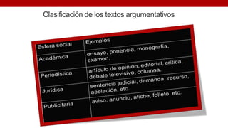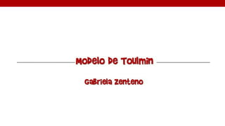 Este documento describe el modelo de argumentación de Toulmin. Se explica que el modelo consta de seis partes: evidencia, opinión, garantía, respaldos, cualificador modal y reserva. La evidencia son los datos de apoyo, la opinión es la conclusión, la garantía vincula los datos con la conclusión, los respaldos respaldan la garantía, el cualificador modal indica la certeza de la conclusión y la reserva contempla objeciones. El documento provee ejemplos para ilustrar cómo funciona el modelo de Toulmin.