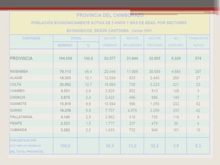 Este documento presenta un análisis de la situación económica actual de la provincia de Chimborazo en Ecuador y propone políticas económicas para su desarrollo entre 2012-2015. Describe las características geográficas y demográficas de la provincia, así como los sectores productivos y los desafíos que enfrenta como la baja productividad agrícola y los altos niveles de pobreza y analfabetismo. Propone políticas para mejorar la infraestructura, servicios básicos, créditos