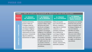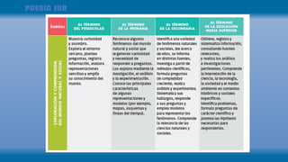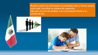 Este documento presenta los principales aspectos del planteamiento curricular para la educación obligatoria en México. Describe los fundamentos del enfoque humanista y los desafíos de la sociedad del conocimiento. También explica que se basa en los aprendizajes clave organizados en campos de formación, y que busca desarrollar los cuatro pilares de la educación. Finalmente, enfatiza la importancia de crear ambientes de aprendizaje que reconozcan la diversidad y fomenten el aprendizaje cooperativo.