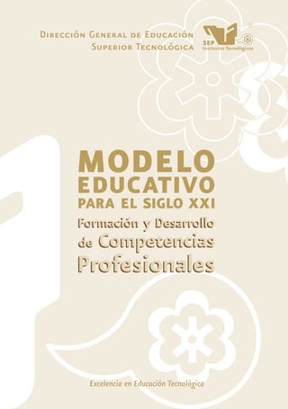 Este documento presenta el Modelo Educativo para el Siglo XXI desarrollado por la Dirección General de Educación Superior Tecnológica. El modelo busca formar profesionales competentes con visión crítica y emprendedora para resolver problemas. Se compone de tres dimensiones: filosófica, académica y organizacional. La dimensión filosófica establece los principios y la visión-misión. La dimensión académica define los aspectos pedagógicos, curriculares y de investigación. La dimensión organizacional abord