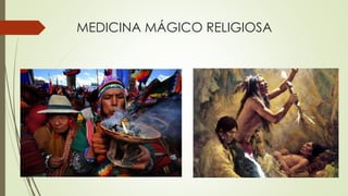 Este documento compara diferentes modelos de medicina a través de la historia, incluyendo la medicina mágico-religiosa de Mesopotamia, Egipto y la alquimia, la medicina de Hipócrates y Galeno en Grecia, la medicina árabe y egipcia, y la medicina durante la Edad Media en Roma y China.
