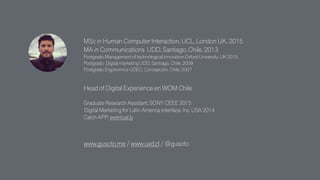 El documento propone un modelo para la gestión de equipos de UX, enfatizando la necesidad de habilidades específicas en áreas como la gestión de contenidos, la interacción humano-computadora y la investigación de usuarios. Se aborda la importancia de comprender el impacto de las decisiones de diseño y la medición de indicadores para optimizar experiencias digitales. Además, se menciona la necesidad de definir y evaluar competencias dentro del equipo para cerrar brechas de conocimiento.