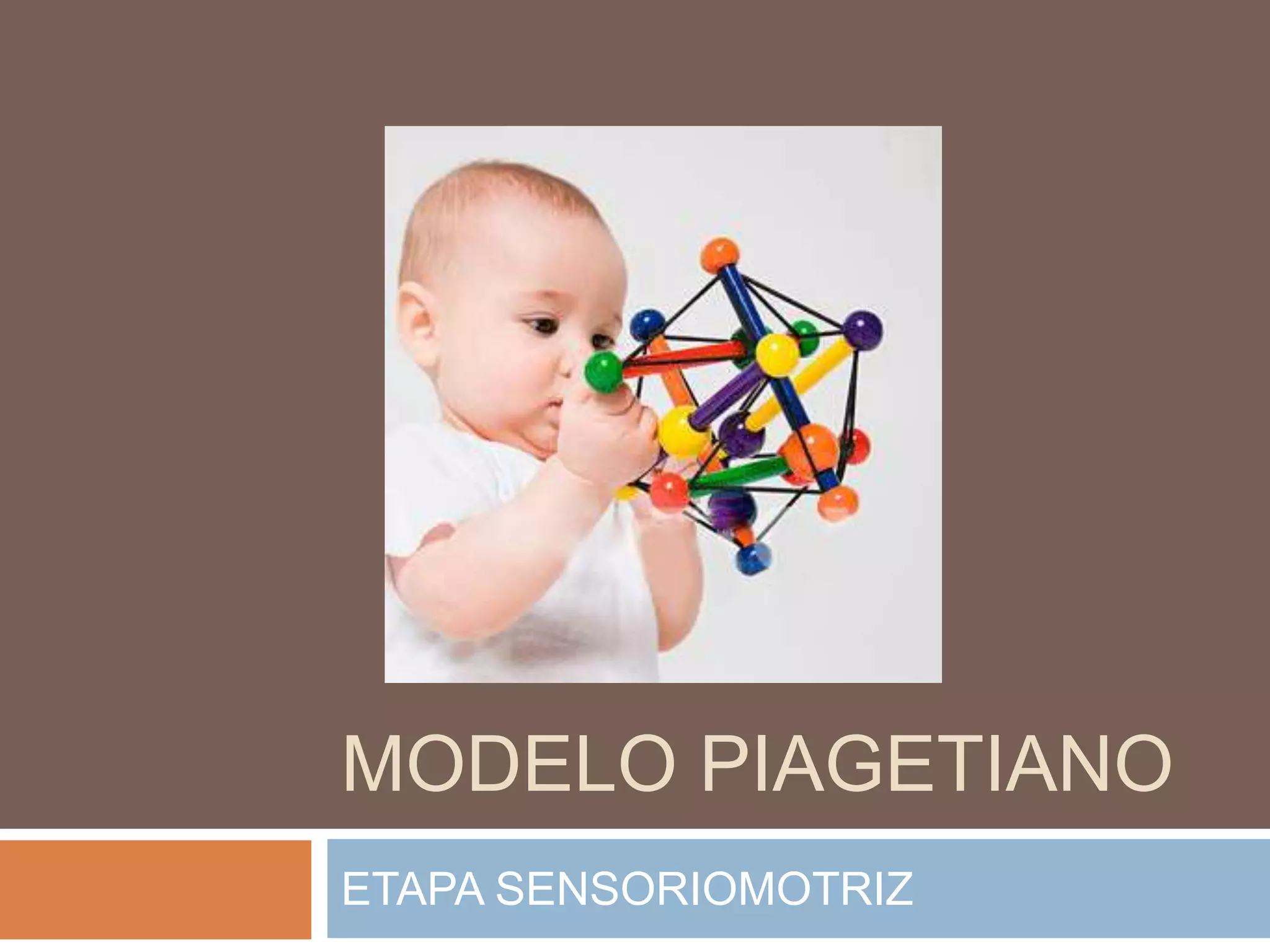El documento describe el modelo de desarrollo cognitivo de Piaget, incluyendo las 6 subetapas de la etapa sensoriomotriz desde el nacimiento hasta los 24 meses. También cubre los conceptos de habilitación, deshabilitación, preferencia visual, memoria explicita e implicita que forman parte del modelo cognitivo de Piaget para entender el procesamiento de la información en los niños.