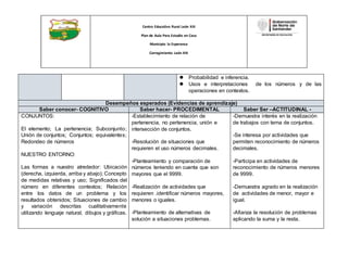 Este documento presenta el plan de aula para el estudio en casa de matemáticas para estudiantes de tercer grado en el Centro Educativo Rural León XIII. El plan cubre temas como conjuntos, números decimales, números mayores y menores de 9999, y la resolución de problemas utilizando suma y resta. El plan describe los aprendizajes esperados, recursos disponibles, y una ruta metodológica que incluye exploración, estructuración y transferencia de conocimientos. Debido a limitaciones geográficas y de recursos,