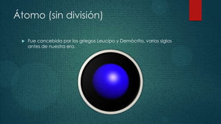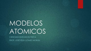 Este documento describe los modelos atómicos desde el modelo griego del átomo indivisible hasta el modelo actual. Incluye los modelos de Dalton, Thomson, Rutherford, Bohr, Chadwick y el modelo mecano-cuántico. Cada modelo propuso nuevas ideas sobre la estructura atómica a medida que los científicos descubrían más información experimental.