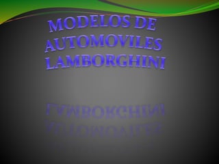 El documento resume las especificaciones de motores Lamborghini a través de los años, incluyendo el tipo de motor (V8, V10, V12), la capacidad de cilindrada y la velocidad máxima. Cubre desde 1963 hasta la actualidad, mostrando cómo Lamborghini ha mejorado continuamente la potencia de sus motores a lo largo de las décadas.