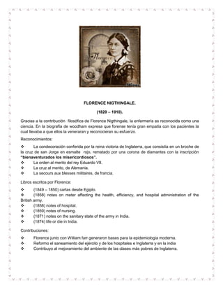 Este documento presenta una lista de modelos de enfermería y describe brevemente los modelos de Florence Nightingale, Hildergar E. Peplau, Chrisman y Fowler, Betty Neuman y Callista Roy. Proporciona detalles sobre sus elementos, fases, supuestos y enfoques para la intervención de enfermería. El documento también incluye una sección sobre la contribución de Florence Nightingale a la enfermería moderna.