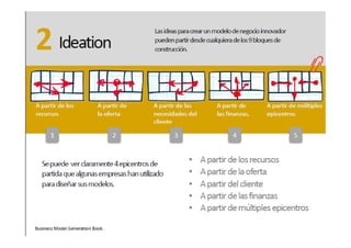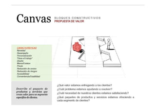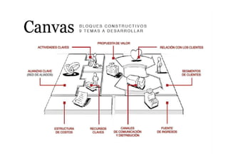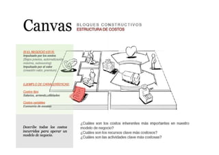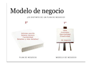 El documento describe los componentes clave de un modelo de negocio, incluyendo las redes de socios, actividades principales, oferta de valor, canales, relaciones con clientes, flujos de ingresos y estructura de costos. Explica que un modelo de negocio representa cómo una empresa genera beneficios a través de la interacción de estos elementos y cómo crea, desarrolla y captura valor.