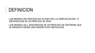 Este documento describe y compara varios modelos de procesos de desarrollo de software. Presenta el modelo en cascada, los modelos evolutivos como el incremental y el espiral. También describe modelos ágiles como Crystal Clear, XP y FDD, los cuales se enfocan en iteraciones cortas y entregas frecuentes con participación del cliente.