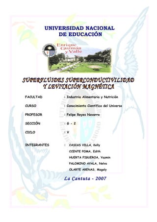 Los documentos presentan información sobre diferentes cursos, profesores y alumnos de la Universidad Nacional de Educación en La Cantuta. Se proporcionan detalles como la facultad, especialidad, curso, profesor e integrantes o alumnos para múltiples materias y secciones a lo largo de 2007.
