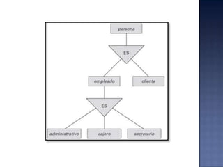 Este documento describe los conceptos fundamentales de los modelos de datos, incluyendo el modelo entidad-relación y el modelo orientado a objetos. Explica cómo estos modelos permiten modelar los datos de una base de datos mediante la definición de entidades, atributos, relaciones y clases.