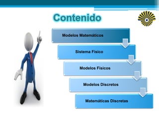 Este documento presenta una introducción a los modelos matemáticos. Explica que un modelo matemático describe objetos del mundo real usando lenguaje matemático. Luego describe tres fases clave de los modelos matemáticos: construcción, análisis e interpretación. Finalmente, menciona algunos ejemplos comunes de modelos matemáticos como los modelos meteorológicos y económicos.