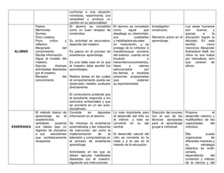 Este documento presenta una matriz que caracteriza cinco modelos pedagógicos (pedagógico tradicional, conductista, romanticismo pedagógico, desarrollismo pedagógico y pedagogía socialista) según varias categorías como el maestro, el alumno, la enseñanza, el aprendizaje y la evaluación. Cada modelo tiene una perspectiva diferente sobre estos elementos y su relación. El documento también incluye una crítica de los modelos tradicional y conductista.