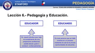 Este documento trata sobre la pedagogía y la educación. Explica que la pedagogía se refiere a la persona que educa a otros de manera profesional, y que la educación es el proceso por el cual una persona se educa a sí misma. También describe que la relación entre el educador y el educando debe darse en un clima de tranquilidad y tolerancia mutua para que sea beneficiosa. Finalmente, destaca la importancia de que el sistema educativo asuma la responsabilidad de formar ciudadanos capaces de vivir en sociedad de manera plena y