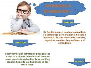 Este documento presenta una discusión sobre diferentes modelos pedagógicos como el modelo instruccional, el modelo activista, y modelos contemporáneos. También describe los componentes clave de un modelo pedagógico como métodos, contenidos, desarrollo, meta e intención, y la relación maestro-alumno. Además, identifica a autores como Julián de Zubiría y Rafael Florez y sus contribuciones al estudio de los modelos pedagógicos. Finalmente, presenta ejemplos concretos de modelos como el modelo pedag
