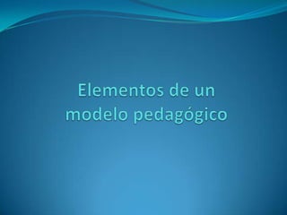 Este documento discute los modelos educativos y el diseño de programas de educación a distancia. Explica que es importante definir el enfoque pedagógico que servirá de marco de referencia para el diseño de la estrategia educativa. También describe algunos elementos clave de un modelo pedagógico como los fines educativos, qué y cómo enseñar, y la evaluación.