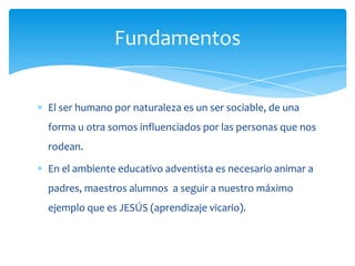 Este documento describe el modelo de aprendizaje cooperativo, en el cual los estudiantes trabajan juntos en grupos pequeños para ayudarse mutuamente en el aprendizaje. Explica que este modelo se basa en teorías como la interdependencia social y el desarrollo cognitivo. También detalla los beneficios del aprendizaje cooperativo, como el desarrollo de habilidades de comunicación y razonamiento crítico, así como mayores logros académicos.