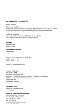 Este documento presenta el programa académico de un curso sobre modernidad y educación. Incluye los objetivos generales y específicos de cada capítulo, los contenidos a cubrir, y las lecturas obligatorias y complementarias. El primer capítulo examinará las diferentes perspectivas sobre la modernidad, el segundo analizará la identidad latinoamericana y su relación con la modernización, y el tercero revisará la educación en su concepción moderna. El curso pretende estudiar el concepto de modernidad a través de los debates filosóficos cl