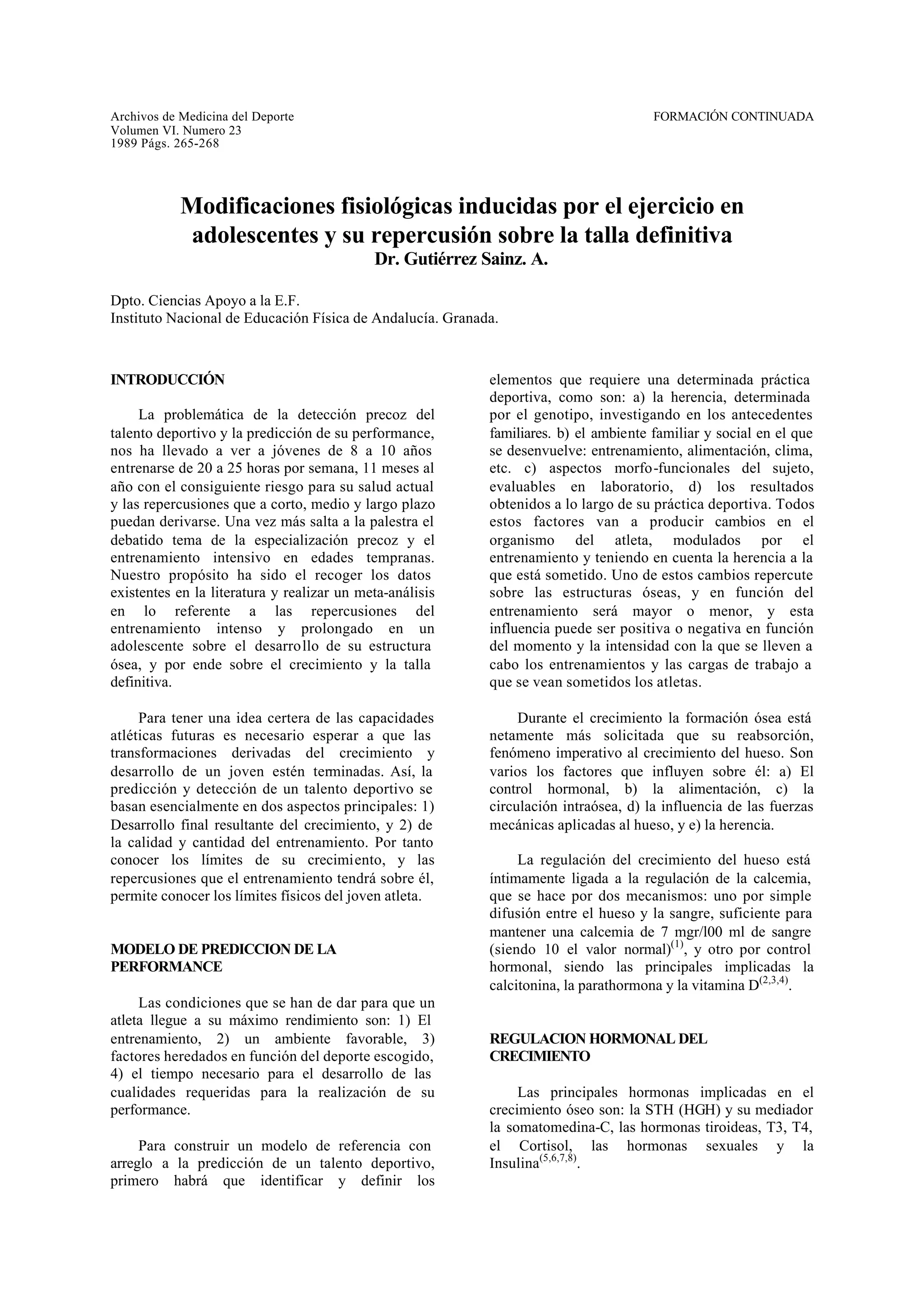 El documento discute los efectos del ejercicio intenso en adolescentes sobre su crecimiento y talla definitiva. Examina estudios en animales que muestran que el entrenamiento prolongado puede inhibir el crecimiento óseo, mientras que un ejercicio moderado lo favorece. En humanos, los resultados son contradictorios, pero el estrés persistente en las placas de crecimiento parece inhibir el crecimiento. El ejercicio aumenta hormonas como la STH, cortisol y hormonas sexuales, con efectos opuestos sobre el crecimiento. La intensidad
