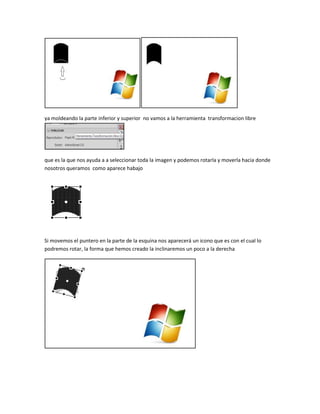 Este documento proporciona instrucciones para crear dibujos combinados en Adobe Flash mediante el uso de herramientas como rectángulo, selección y transformación. Explica cómo dibujar formas básicas, copiar y rotar objetos, y combinar múltiples formas para crear un diseño más complejo. También muestra cómo colorear objetos individuales y agruparlos como un solo conjunto.