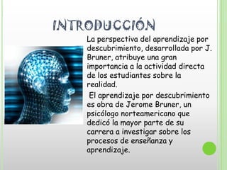 El documento resume los principales modos de aprendizaje según Jerome Bruner y describe el modo de aprendizaje cinestésico. El autor realizó una prueba que determinó que su modo de aprendizaje predominante es el cinestésico, el cual se basa en las sensaciones táctiles. El resumen concluye que centrarse en actividades que aprovechen este modo cinestésico puede mejorar la comprensión y ejecución de contenidos académicos.